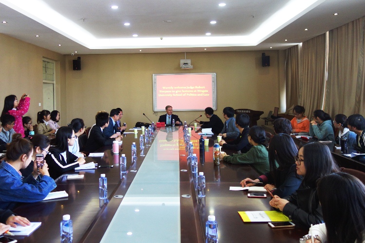 于4月21日上午在贺兰山校区文科楼二楼会议室成功举办了题为《美国法律环境》专题讲座。本次讲座特别邀请了美国宾夕法尼亚州罗伯特•辛普森法官担任主讲,讲座由戴新毅教授主持,学院法律系老师和法学专业本科生与研究生到场聆听学习。