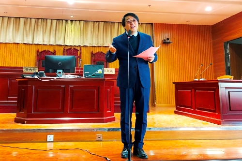 1月4日上午,法律系在模拟法庭召开了2018—2019学年毕业实习总结大会,指导教师代表和2015级法律系全体学生参加了大会。系主任张弛主持了会议。
