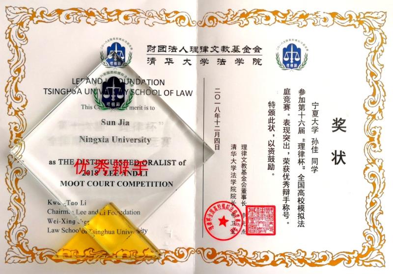 党委书记潘瑞担任领队,李丽婷、赵雅洁老师作为教练全程指导比赛,2016级法学专业孙佳同学获得“优秀辩手”称号。