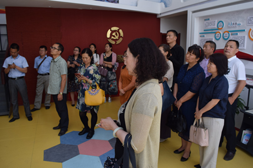 共享社区党支部书记刘丽娟为大家讲解了社区的党建工作经验。共享社区创建了党群服务站、社区党校,其五步工作法、红色小报、党员教育管理新模式、六色党员积分制管理、社区微党课、居民说事点、民族团结同心联盟、流动人口服务体系等多项特色亮点工作受到社区居民的认同,使社区居民的幸福指数上升很多,小区内一派和谐文明的景象。