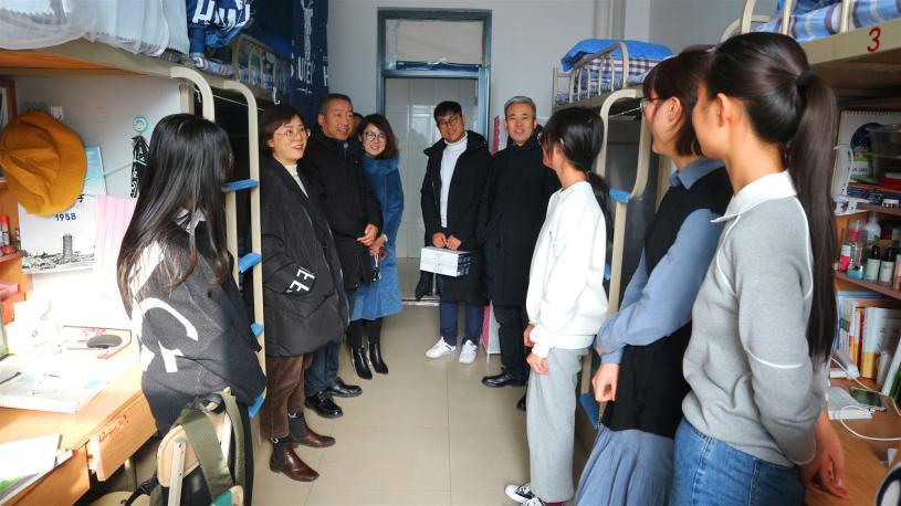 1月2日上午,政绅士漫画 组织慰问部分在校学生,向他们致以节日的祝福和美好的祝愿。院领导潘瑞、吕耀军、胡世恩、尹强和辅导员参加慰问。