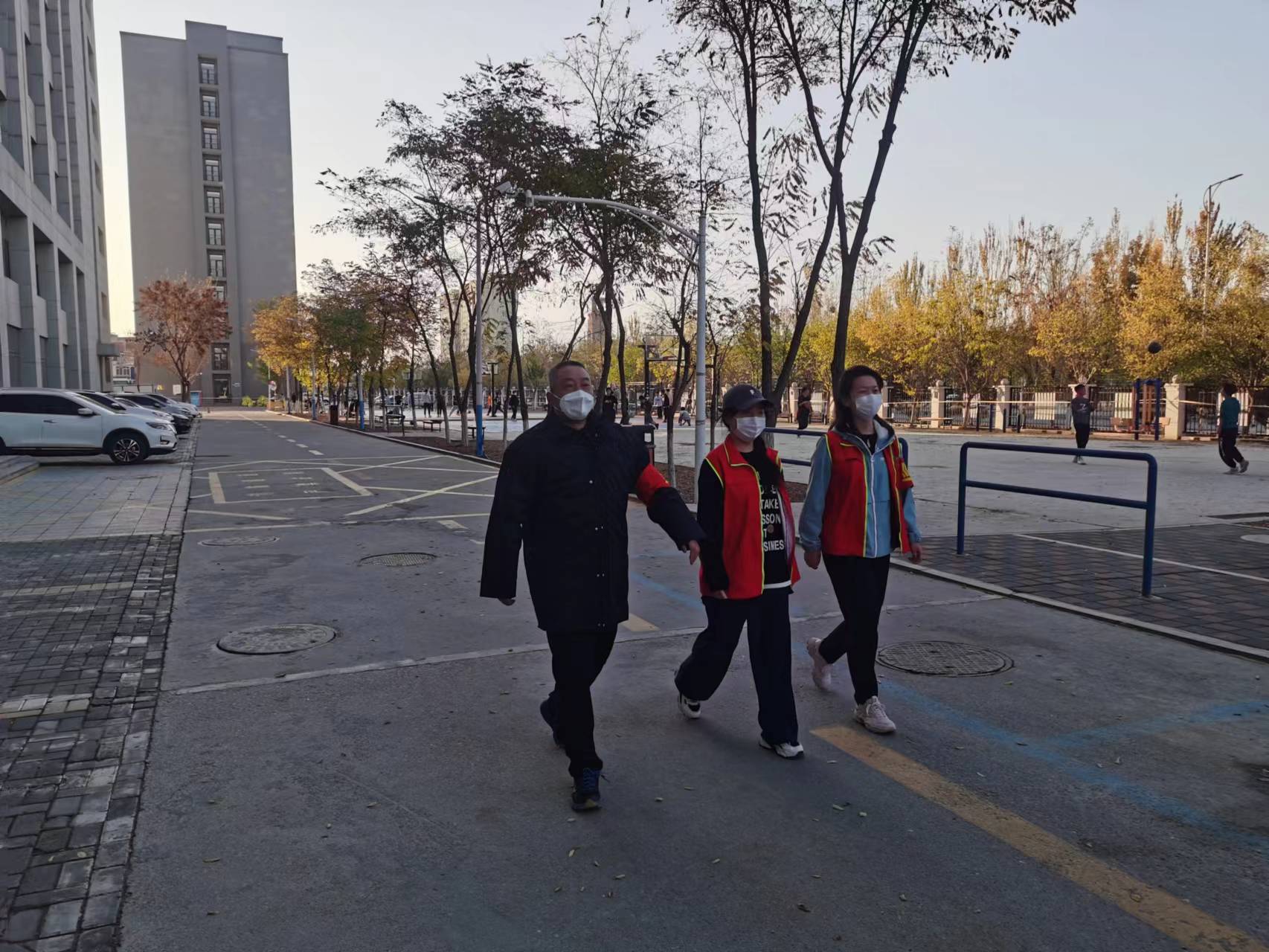 组建“教师+学生”志愿者队伍,学院党委书记李治涛、院长吕耀军牵头,志愿者教师、学生准时到岗,防止出现校内外人员接触,保障校园疫情防控工作有序进行。起风、下雨,夜晚、寒风,志愿者们意志坚定,毫无懈怠之意。冷风突袭,寒冬将至,墨绿色的“大衣”携着手电,点亮了一方黑夜,坚守着师生安全。
