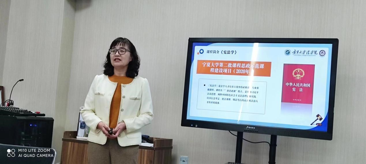 第二批校级“课程思政”示范课程《宪法学》项目负责人白利萍副教授就《宪法学》课程思政的建设情况及结项材料准备情况在会上作了汇报。