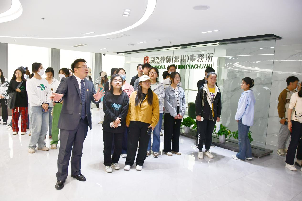 师生一行参观了国浩律师(银川)事务所的主要办公场所,最后双方开展座谈会,就师生关心关注的一系列问题展开互动交流。李善鹏律师分享了自己执业期间的一些感悟和理解,回答了师生们关心的问题,解答了在大学期间如何做好职业规划,如何实现职业价值等问题。座谈会轻松活跃,同学们都表示这次实践活动非常有意义。法律系教师朱蓓予和何磊一同参加活动。