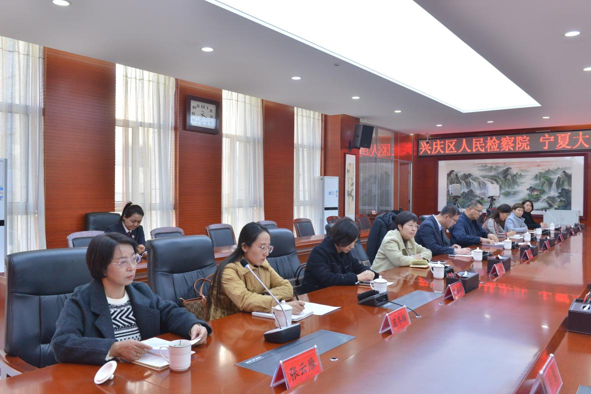 法律系主任朱蓓予,民法学教研室教师李丽婷、唐芳、胡晓莉、张云雁、李艳、庞冬梅老师与兴庆区人民检察院干警代表围绕检校合作、人才培养等方面互动交流。双方一致认为此次共建校外实习基地检校合作签约暨揭牌仪式是双方共同在创新法治人才培养机制、实现司法实践与法学教育的深度融合上迈出坚实一步,能够在法学学科建设、人才培养与就业、理论实践研究等方面深入合作,谋求更高质量发展。