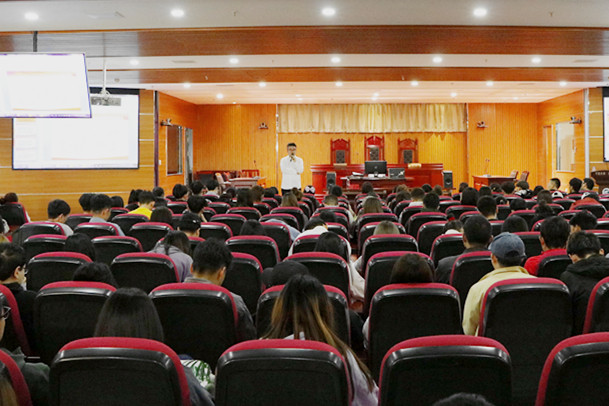 4月14日下午,食品与葡萄酒学院党委副书记马浩谦于模拟法庭为绅士漫画 和食品与葡萄酒学院入党积极分子、发展对象及团学骨干带来一堂生动的党课。