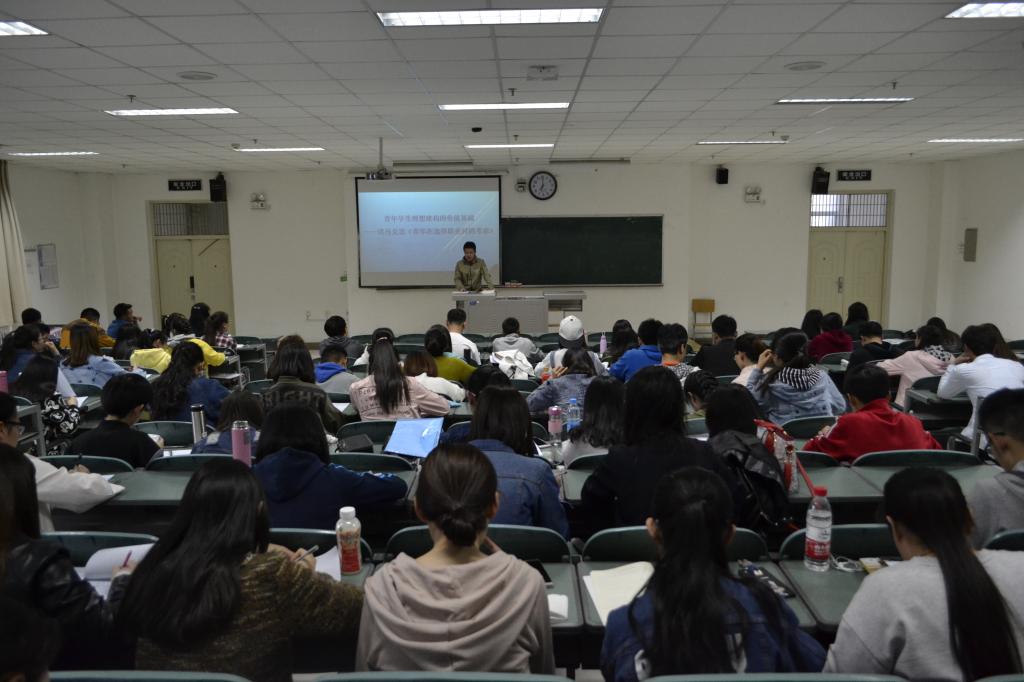 学生工作办公室主任马亮老师在文科楼130教室为学院第三十一期入党积极分子和第五期党员发展对象培训班全体学员作了以“青年学生理想构建的价值基础——读马克思《青年在选择职业时的考虑》”为主题的党课。