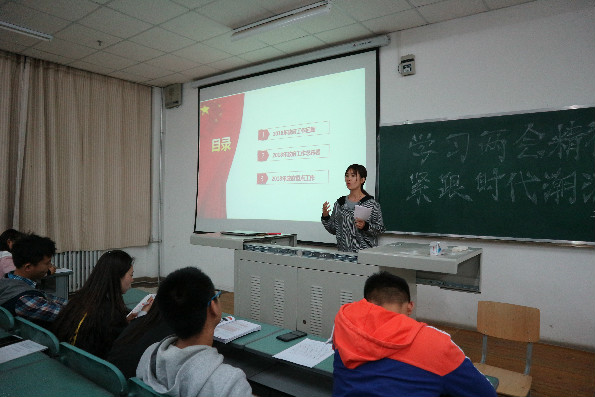 2017级各专业以团支部为单位在贺兰山校区文荟楼334、336教室召开“学习两会精神,紧跟时代潮流”主题团日活动。