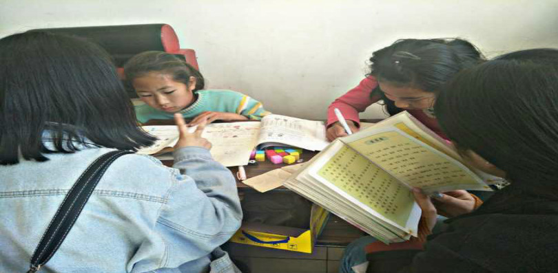 一路上志愿者们欢声笑语,对这次活动充满热忱。十分钟车程后,大家到达目的地。在志愿者服务队队长马小花的简要分配后,志愿者们依次进入到自己所负责的孩子家中,孩子们满心期待地拿出书本等待着。在志愿者们的悉心指导与讲解后,孩子们不仅完成了周末作业,并且预习了新知识。面对孩子们在学习上的困惑,志愿者们也积极地为他们解答,与他们共同探索。