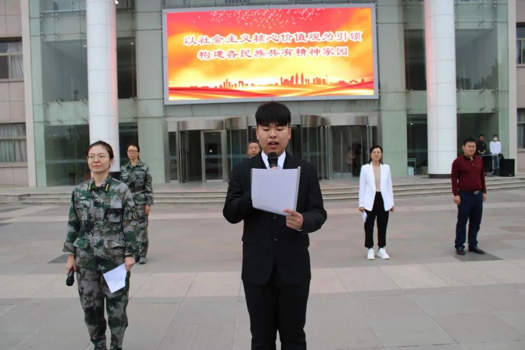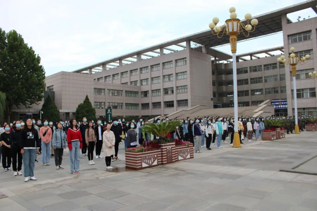 于德勤楼前举行升国旗仪式。学院党委书记潘瑞、院长吕耀军、党委副书记杨扬、副院长马金龙及2018级、2019级和2020级所有本科生、研究生参加升国旗仪式。辅导员王嘉豫主持升旗仪式。
