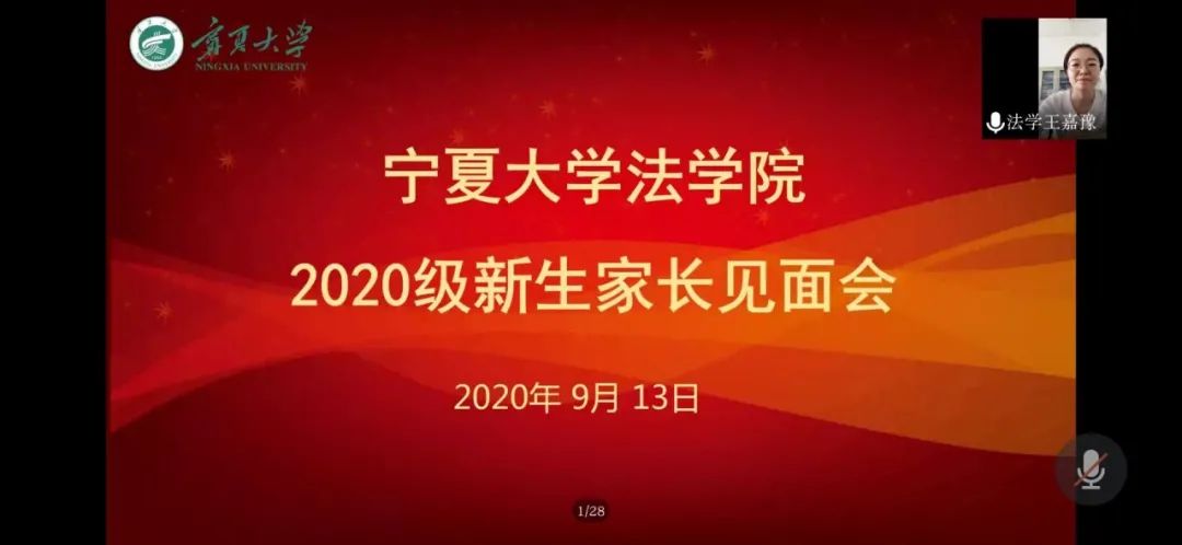 通过腾讯会议app召开2020级本科新生家长线上见面会。学院党委书记潘瑞、院长吕耀军、党委副书记杨扬、副院长马金龙、法律系系主任张弛、行政管理与社会学系系主任杨文林和各班班主任出席见面会,会议由辅导员王嘉豫主持,近200名新生家长参会。