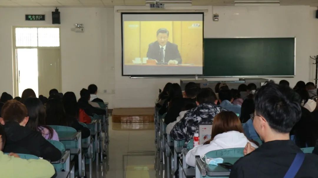 最后,全场齐声高唱《歌唱祖国》,大会在激昂的歌声中结束。现场参与观看直播的同学们响起了激烈的掌声。