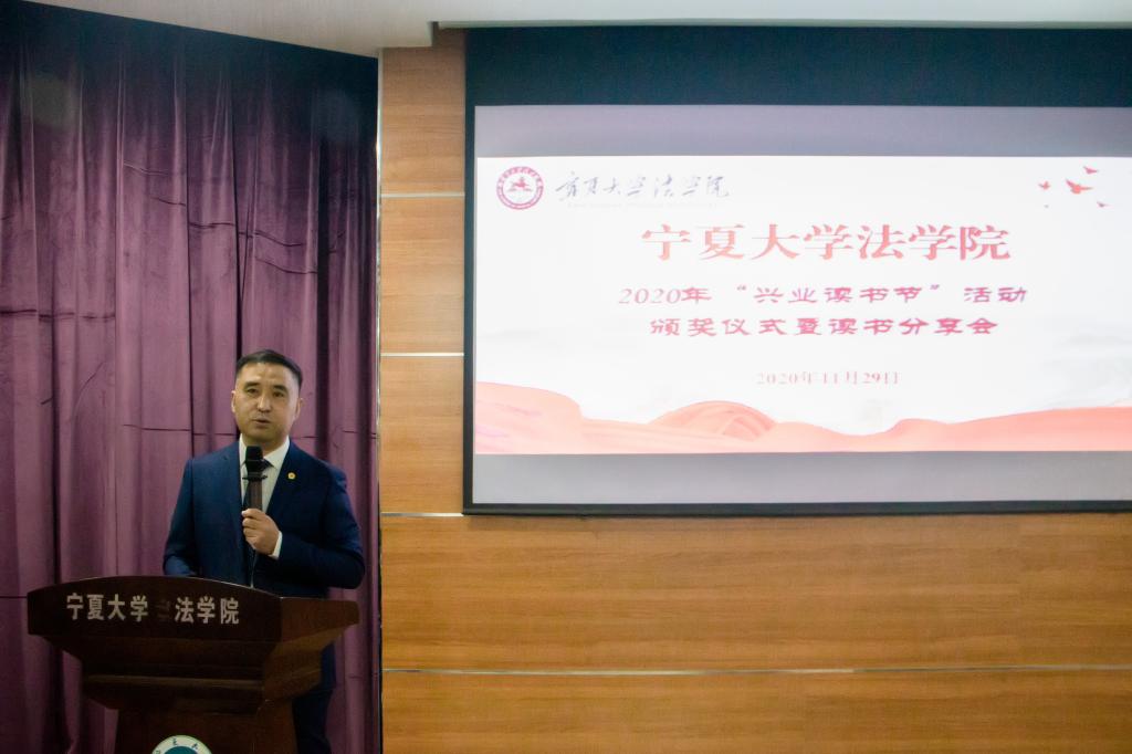 于11月29日晚在文荟楼模拟法庭举办2020年“兴业读书节”活动颁奖仪式暨读书分享会。学院党委书记潘瑞、副书记杨扬,宁夏兴业律师事务所合伙人郝运清、杨玉君、马力国,绅士漫画