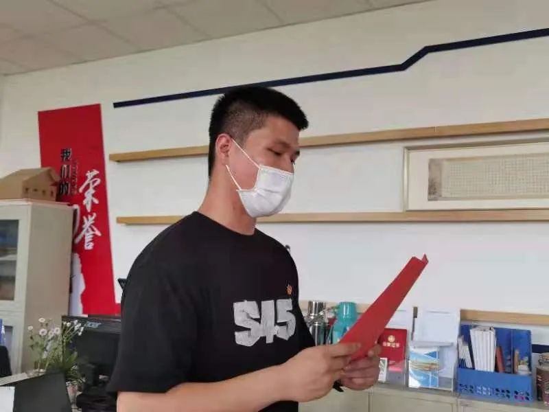 入团仪式在庄严的国歌声中拉开序幕。主持人宣布了新发展团员名单,王嘉豫为新团员佩戴团徽。闪闪的团徽佩戴在左胸前,新团员们的组织感和荣誉感油然而生。在新团员入团宣誓环节中,同学们满怀敬意地读出神圣而庄严的入团誓词,更加坚定了自己为共产主义事业奋斗的决心。2020级团员代表马岩宣读了《中国共产主义青年团章程》中有关团员权利和义务的相关规定,让新老团员再一次明悉了自己的责任和使命。入团仪式最后,王嘉豫对新团员提出了要求和期许,希望新团员时刻牢记自己是一名共青团员,自觉加强组织性和纪律性,同时激励老团员们也要不忘初心、砥砺前行,以身作则带领同学们勤奋学习、提高能力、奋力拼搏,争做新时代的优秀青年。