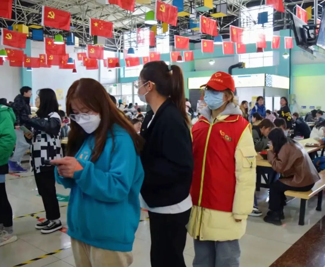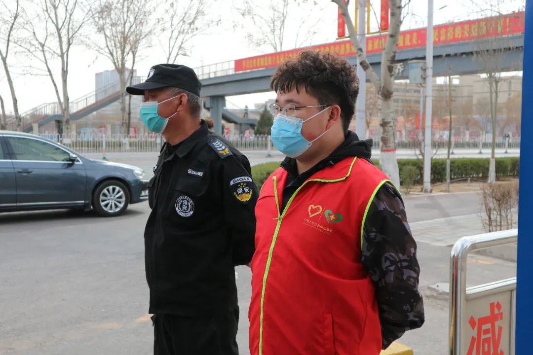 分会在贺兰山校区组织了30名志愿者提醒同学们佩戴口罩,在各个餐厅门口,都可以看到志愿者们有序站岗的情景,他们提醒过往的同学戴好口罩、注意保持间距,为筑牢校园安全防线,共同守护美好校园贡献力量。