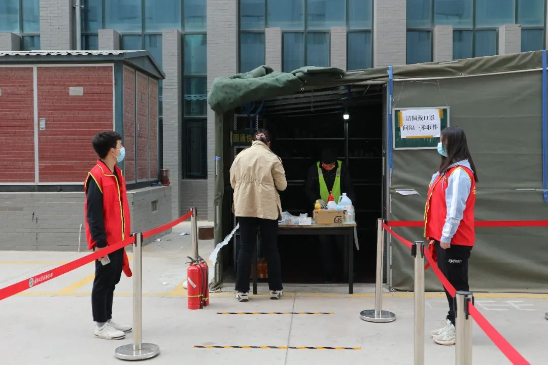 分会组织了怀远校区群贤楼第一周的送餐志愿活动,一位位志愿者身穿红马甲,将一份份饭菜定时定点地送至群贤楼,有助于保障被隔离同学的生活需求,配合学校防疫工作的顺利进行。