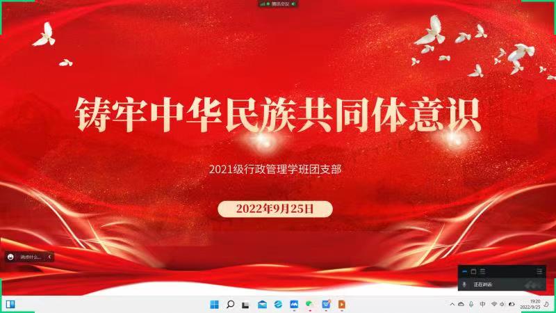 各民族师生交往交流交融,院属各团支部于9月25日晚开展“铸牢中华民族共同体意识”主题团日活动,本次活动采取腾讯会议的形式进行,由各班团支部书记主持。
