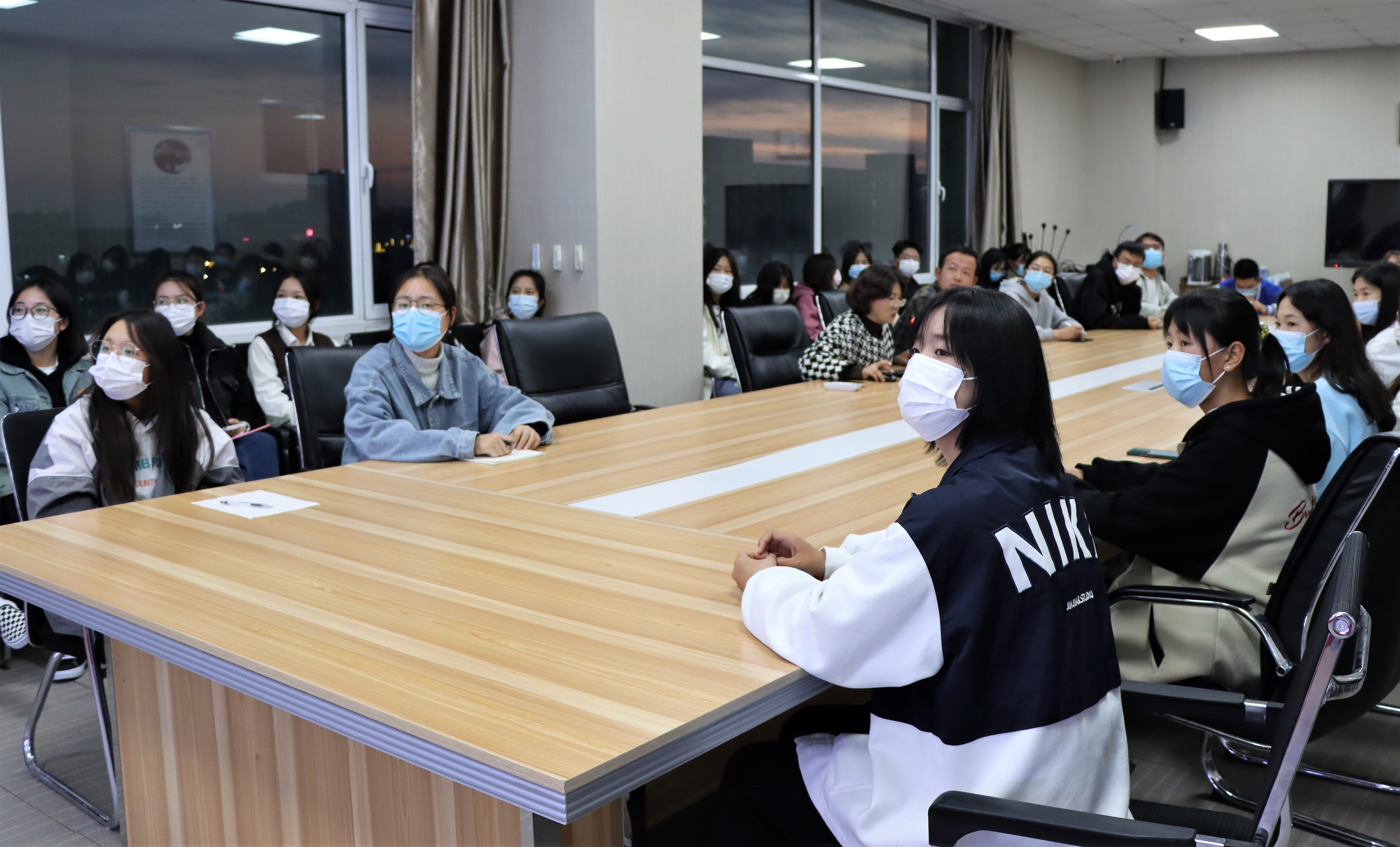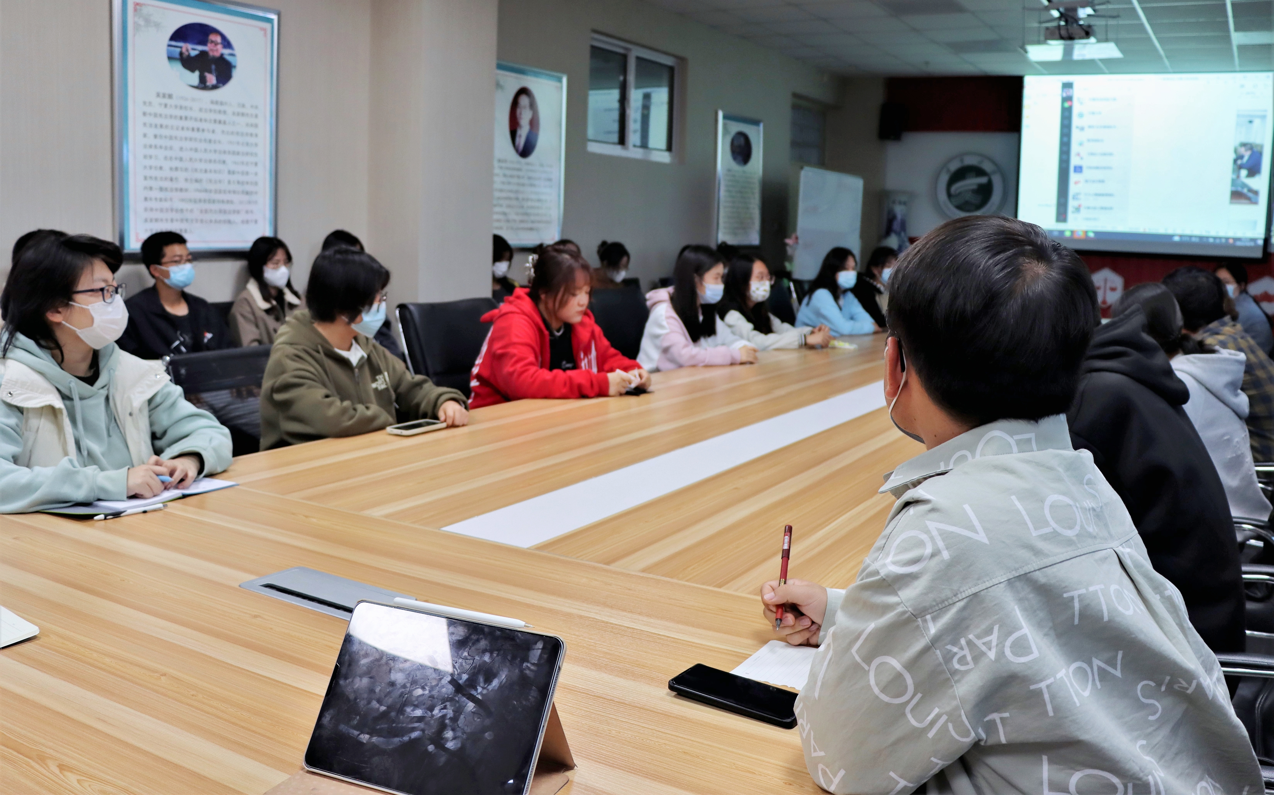 于文荟楼801会议室举办了新闻撰写培训讲座。讲座由新闻传播学院党总支书记潘瑞主讲,学院党委副书记杨扬主持,辅导员付晓晨与传媒中心全体工作人员聆听了讲座。