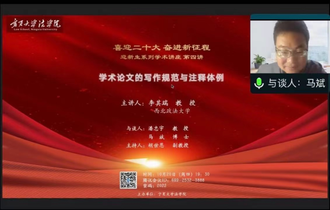10月20日晚7:30,学术讲座第四讲围绕“学术论文的写作规范与注释体例”展开。本次讲座特邀西北政法大学法治文化研究中心主任、马克思主义法学研究所所长李其瑞教授担任主讲嘉宾,绅士漫画