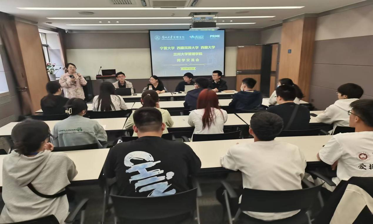 、西藏民族大学、西藏大学、兰州大学管理学院同学交流会,由兰州大学管理学院2019级优秀学生尹逸贤、冯伽伟、赵潞烨、邬子靖四位同学向参会同学做了考研保研的经验交流,为同学们的大学规划做了详细分析,最后又留出时间耐心细致地回答了同学们提出的问题。通过本次交流会使得同学们对自己的大学生涯有了进一步的清晰规划。