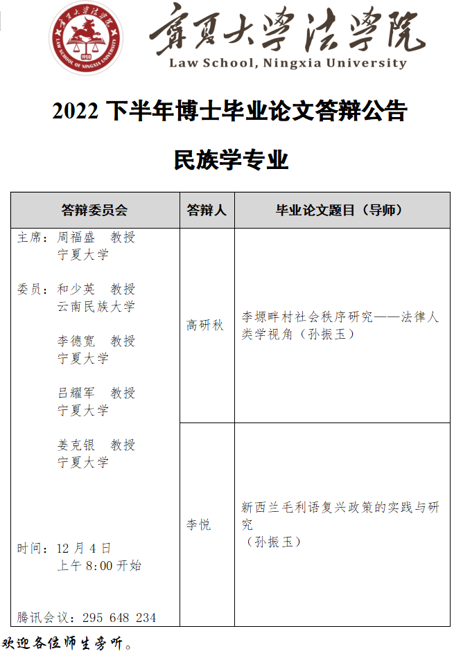 绅士漫画 民族学专业2022下半年博士毕业论文答辩公告