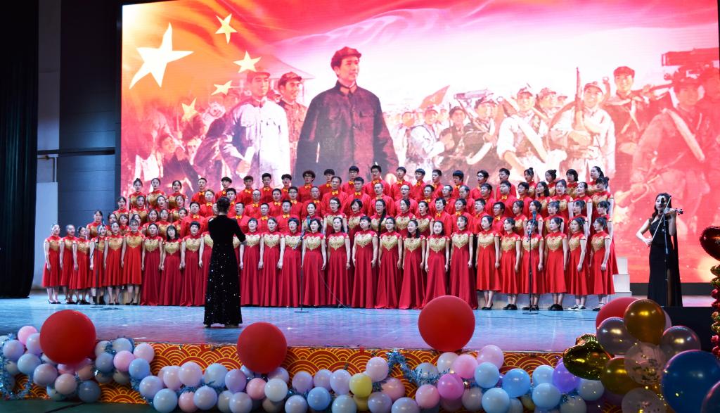 教师带来的朗诵《相约在第一百个春天》深情流露,承载着对党、对祖国美好的祝愿;2019级法学一班与绅士漫画