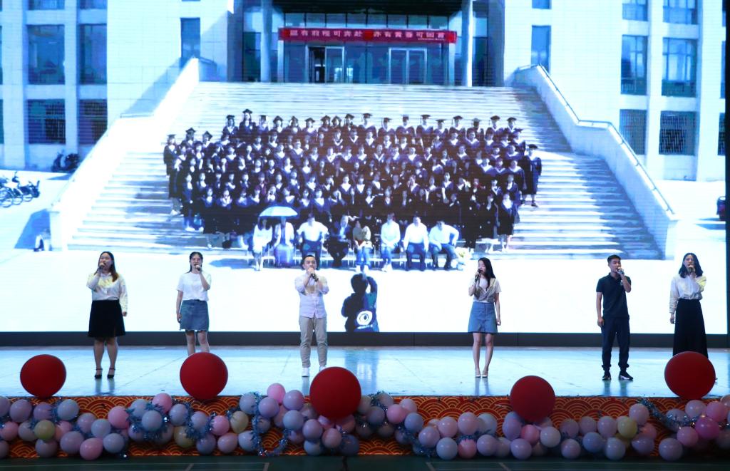 全体同学为毕业生送上美好的祝福;院长吕耀军为晚会致辞,道出珍重,殷切希望毕业生们树立远大目标,砥砺前行,不负众望。