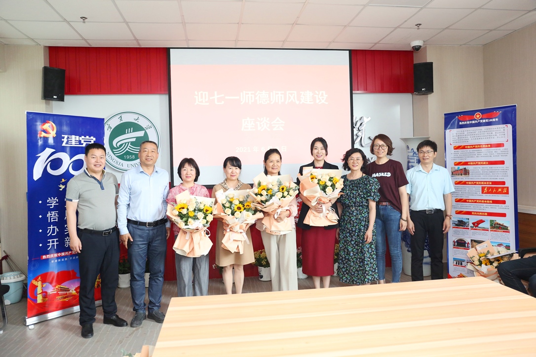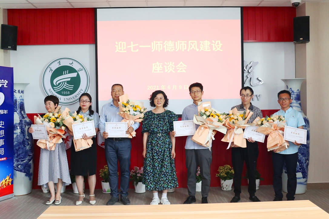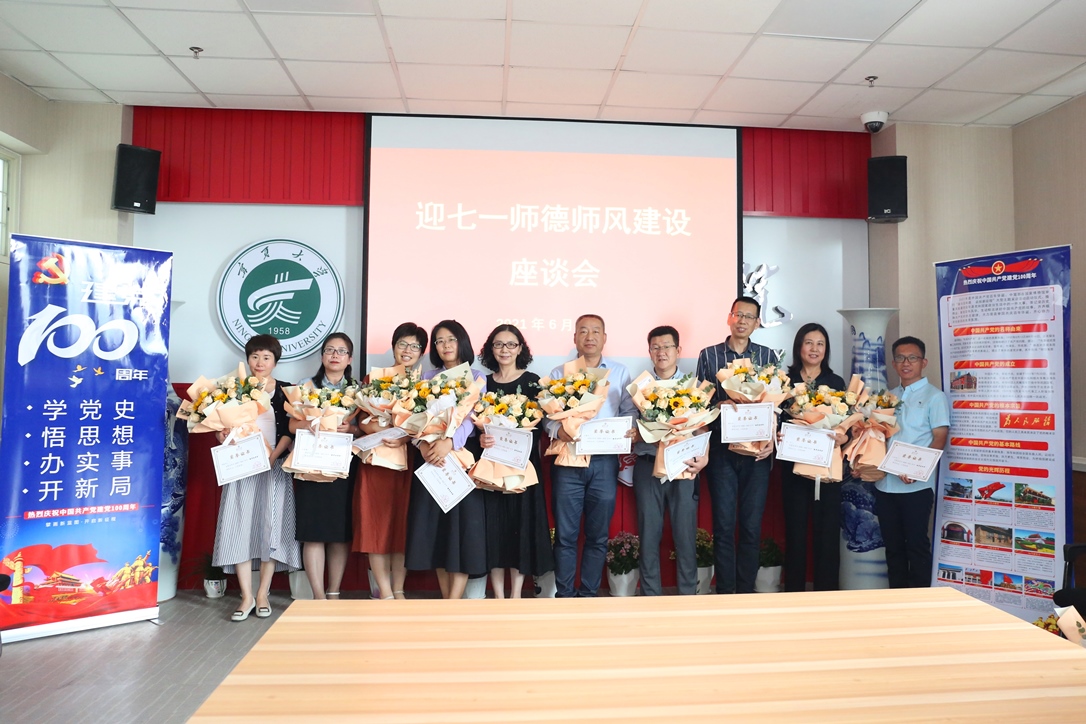 6月9日下午,绅士漫画 召开迎“七一”师德师风建设教师座谈会。会议表彰了2020年度院级 “我心目中的好老师”、教学优秀奖、科研及服务地方突出贡献奖及工会工作积极分子奖教师,学院领导慰问了25年以上党龄的教师党员、党外教师代表、新引进博士代表。