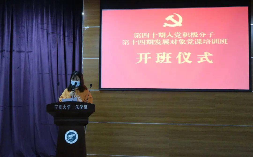 分党校第四十期入党积极分子暨第十四期发展对象党课培训班开班仪式于贺兰山校区文荟楼模拟法庭举行。出席本次开班仪式的有学院党委副书记杨扬、法学研究生党支部书记黄博阳,绅士漫画