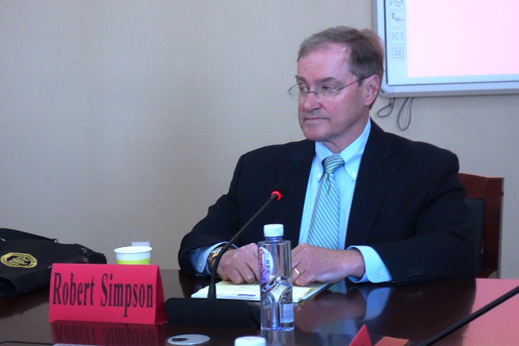 讲座伊始,戴新毅教授首先简要介绍了罗伯特·辛普森法官,并对他的到来表示了热烈的欢迎。辛普森法官现任美国宾夕法尼亚州上诉法院法官、司法教育委员会委员,精通美国宪法、行政法、商法等领域。讲座中,辛普森法官首先细致的已自己的日常工作为切入点介绍了美国法官基本选任制度与日常工作。接着,辛普森法官介绍了美国法院审理案件的方式,为了加深同学们的理解,辛普森法官以宾夕法尼亚州电力公司为例,详述涉及公共服务的典型商业纠纷案件。最后,辛普森法官通过自己担任联邦法官工作的经历真切地希望每一位法律人能通过自己的所学为社会的进步作出应有的贡献。