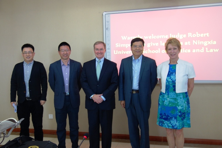 于4月21日上午在贺兰山校区文科楼二楼会议室成功举办了题为《美国法律环境》专题讲座。本次讲座特别邀请了美国宾夕法尼亚州罗伯特•辛普森法官担任主讲,讲座由戴新毅教授主持,学院法律系老师和法学专业本科生与研究生到场聆听学习。
