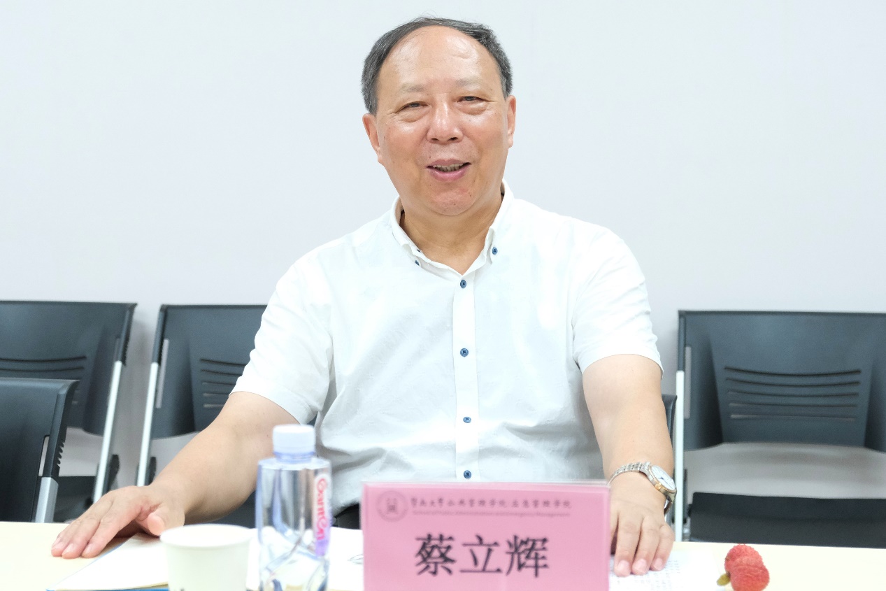 在交流会开始时,暨南大学公共管理学院播放了学院宣传片,详细介绍了学院的教学、科研和社会服务概况。随后,蔡立辉教授详细介绍了公共管理学院近些年在国家级一流本科建设方面的经验和体会,尤其强调智库建设和高端人才培训的重要性。据悉,近五年来,暨南大学应急管理研究中心已承担14项国家级课题,发表100余篇科研论文,同时还积极参与决策咨询,与粤港澳大湾区城市地方政府及重点行业、企事业单位开展了广泛的合作。座谈会上中,李伟权、胡辉华、戴胜利依次就学院工作坊、学术论坛、学术会议、学科实验室规划与建设、研究生培养和学科建设等方面进行了详细介绍。
