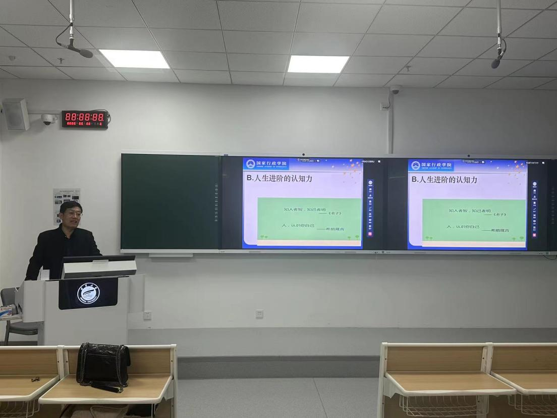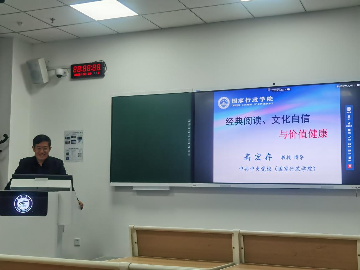 讲座最后,高宏存教授引用张潮《幽梦影》中的“少年读书如隙中窥月,中年读书如庭中望月,老年读书如台上玩月,皆以阅历之浅深,为所得之浅深耳”作为结尾分享给各位同学。马斌老师为讲座作总结发言,“文化自信来源于文化自觉,当代大学生要学会自我管理,学习行政管理首先要会管理自己。”