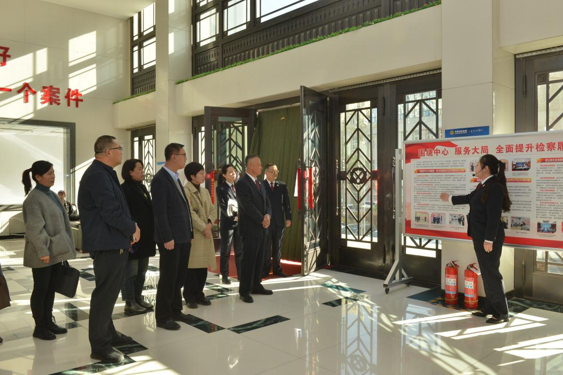 参会代表先行参观了兴庆区人民检察院荣誉展示厅、图书阅览室、未成年人办案区、党建活动室、12309检察服务中心、“石榴籽”检察工作室以及案件管理中心,王建军同志介绍了兴庆区人民检察院的队伍建设、检察品牌以及未成年人案件基本情况。