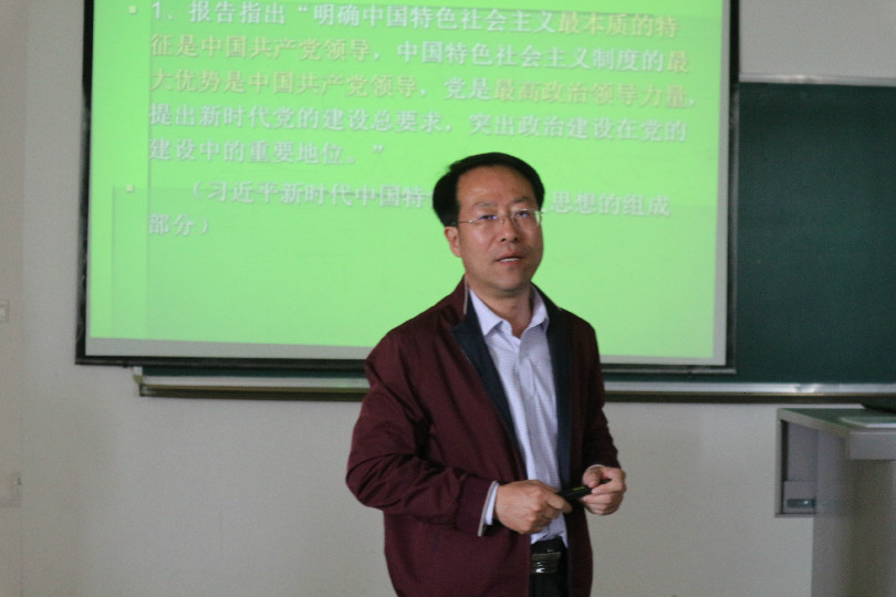思想政治教育与哲学系马拥军老师在贺兰山校区文荟楼340教室为学院第三十三期积极分子、第七期党员发展对象培训班学员作了题为《从十九大报告中看中国共产党的领导》的专题讲座。