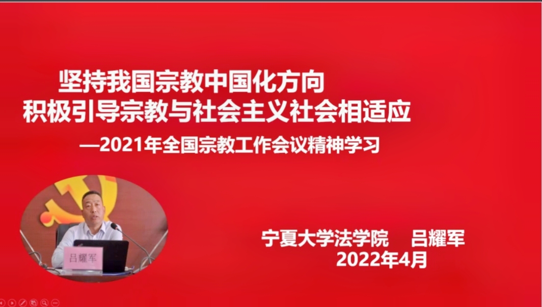 4月18日晚,院长吕耀军为学院分党校第四十一期入党积极分子培训班、第十五期发展对象培训班和第十四期“青年马克思主义者培养工程”暨团学骨干培训班学员于线上开展以“2021年全国宗教工作会议精神解读”为主题的党课,全体培训班学员参加。