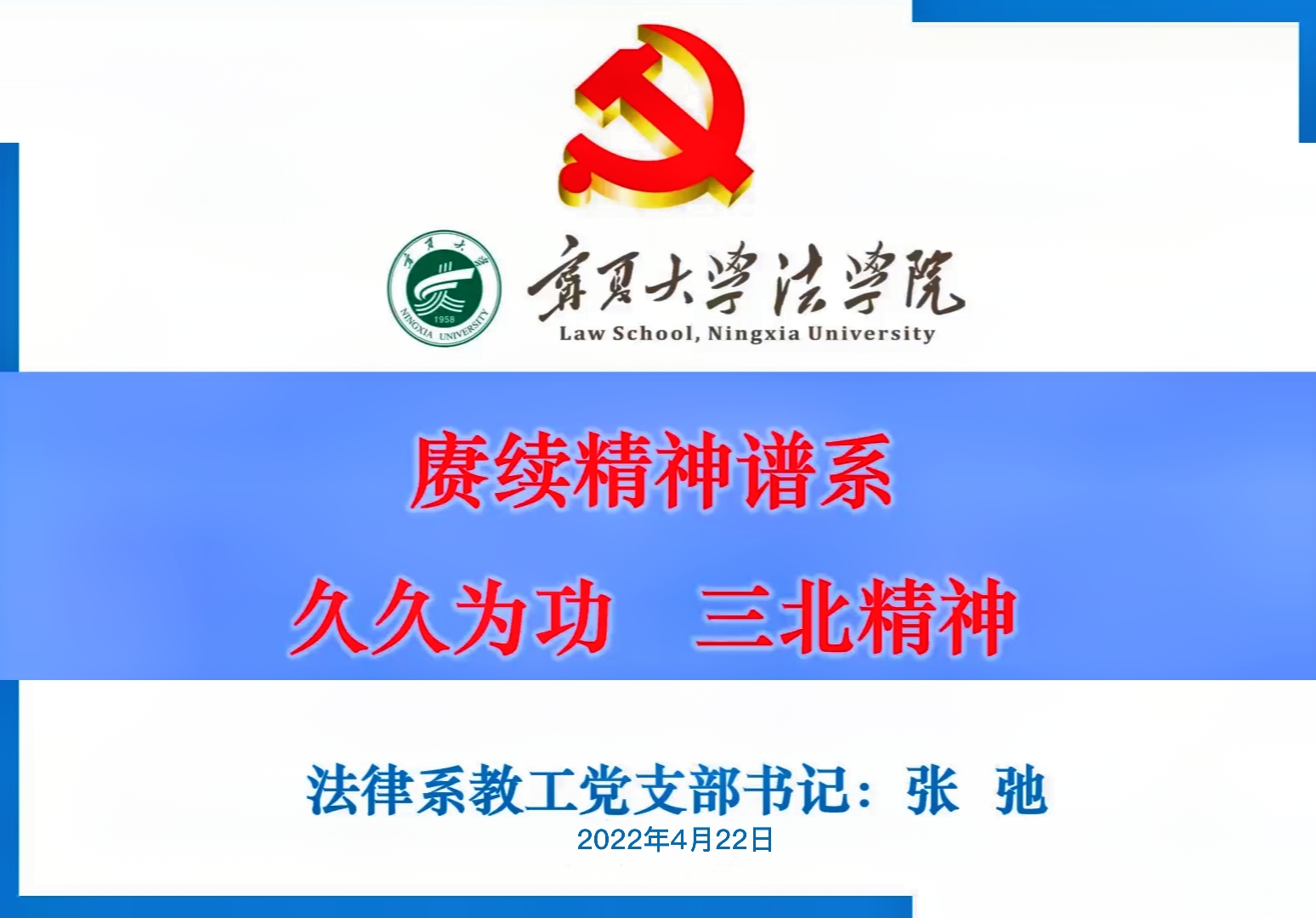 历史因创造而不朽,事业因奋斗而伟大。我们党先后走过革命、建设和改革以及进入新时代的不同时期,孕育锻造出近百种伟大精神,构筑起一脉相承的具有丰富时代内涵和民族特征的精神谱系。为加强入党积极分子、发展对象以及团学骨干思想教育,4月22日晚,学院开展“赓续精神谱系——久久为功,三北精神”线上党课。本次党课由绅士漫画 法律系教工党支部书记张弛主讲,学院分党校第四十一期入党积极分子、第十五期发展对象培训班和第十四期“青年马克思主义者培养工程”暨团学骨干培训班全体学员参加。