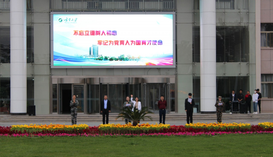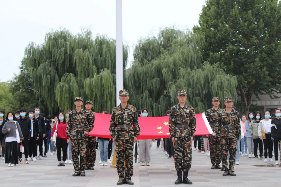 于德勤楼前举行升国旗仪式。学院党委书记潘瑞、院长吕耀军、党委副书记杨扬、副院长马金龙及2018级、2019级和2020级所有本科生、研究生参加升国旗仪式。辅导员王嘉豫主持升旗仪式。