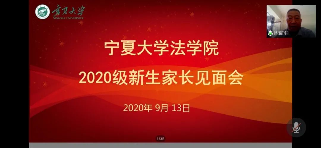 通过腾讯会议app召开2020级本科新生家长线上见面会。学院党委书记潘瑞、院长吕耀军、党委副书记杨扬、副院长马金龙、法律系系主任张弛、行政管理与社会学系系主任杨文林和各班班主任出席见面会,会议由辅导员王嘉豫主持,近200名新生家长参会。