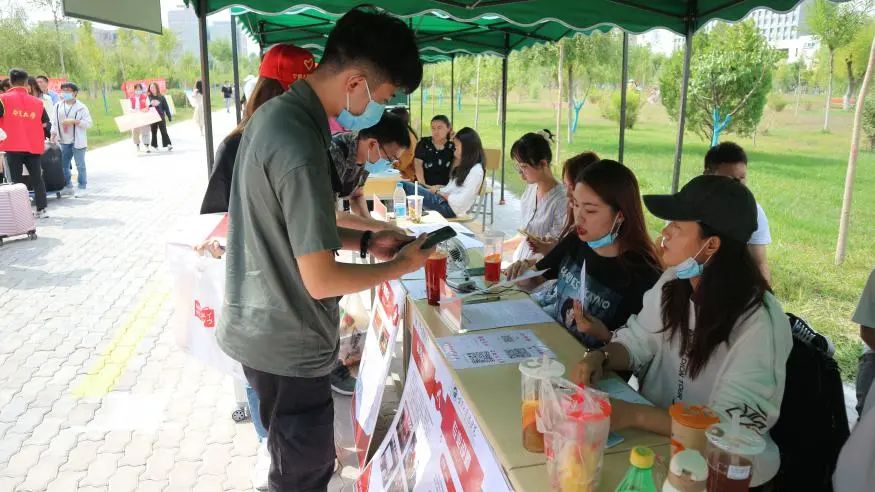 报到注册点。现场摆放着醒目的报到流程示意图,提醒新生有秩序地完成注册手续。注册点志愿者们分工详细,依次进行着信息登记、入学资格初查、发放入学材料等工作。其他志愿者负责新生的行李转运和宿舍引导工作,在今年受疫情影响、家长无法入校的特殊情况下,妥善处理好新生的行李运送问题,让新生获得便捷省心的开学初体验。