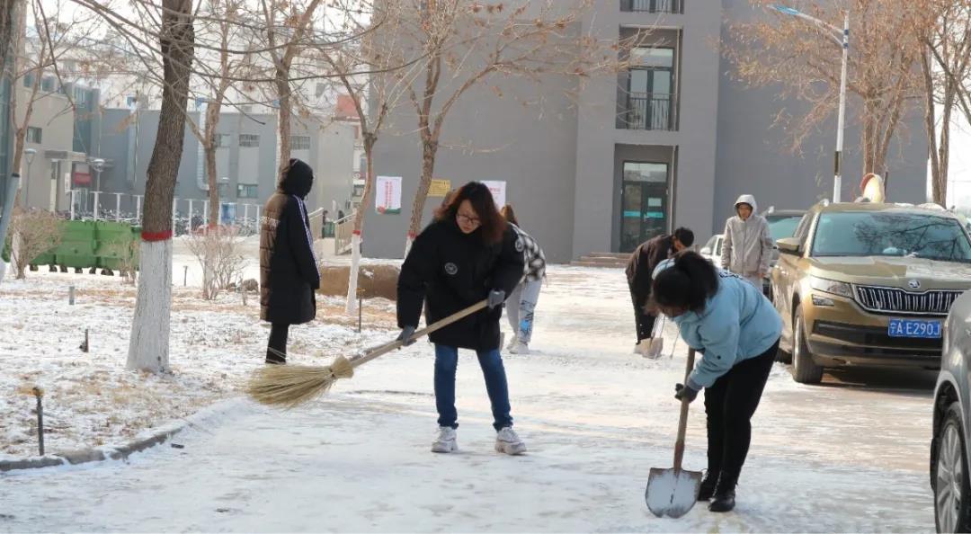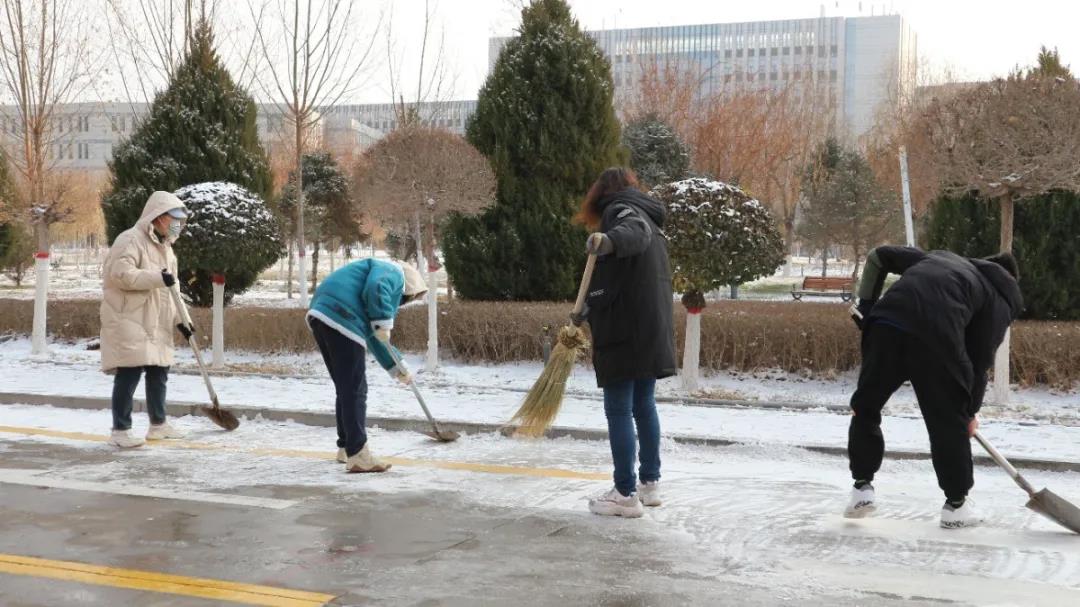 于12月3日下午由学院副书记杨扬带队组织学生扫除积雪,来自18、19、20三个年级的五十余名志愿者参与此次活动。