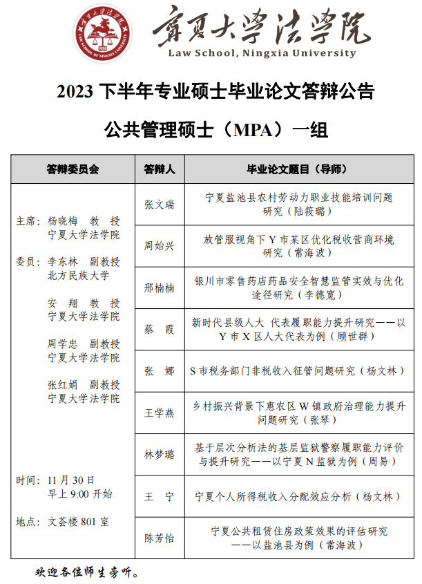 绅士漫画 2023下半年公共管理硕士毕业答辩一组公告