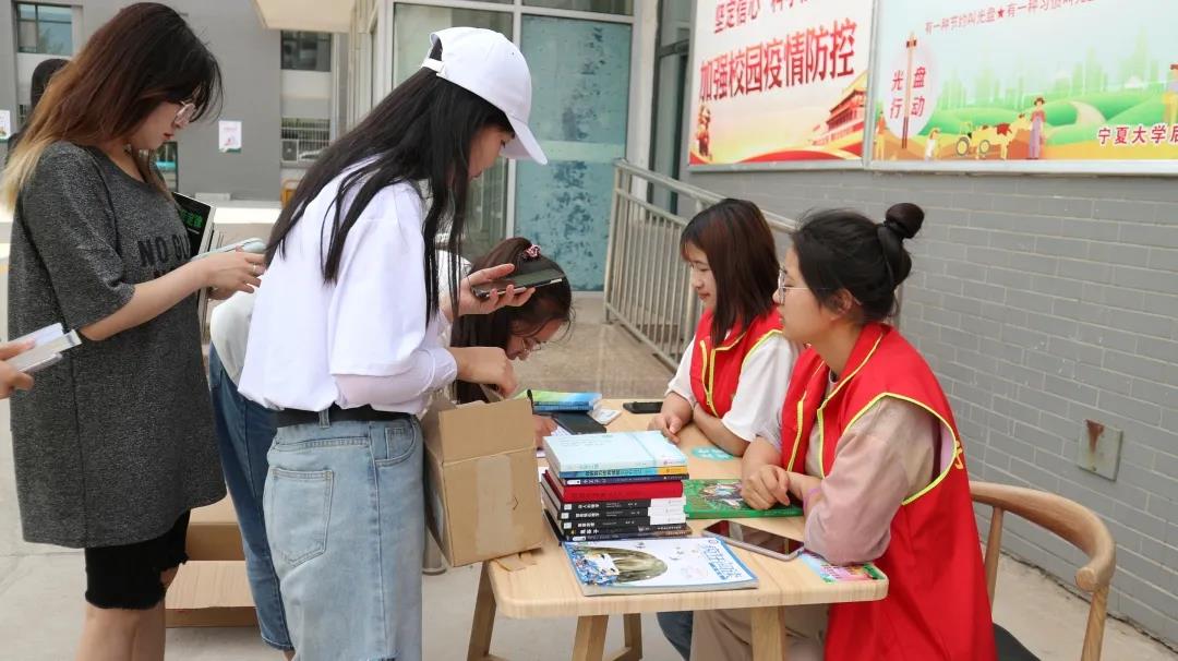 贺兰山校区兰馨苑餐厅门口举办“爱满人间,情暖人心”图书捐献活动。