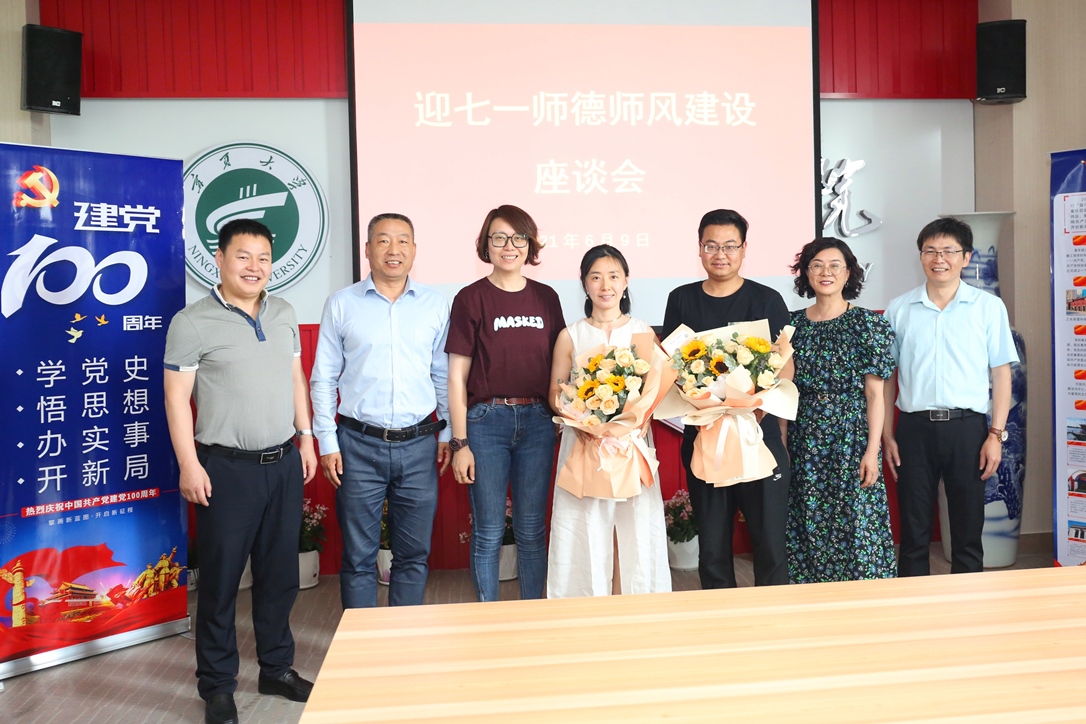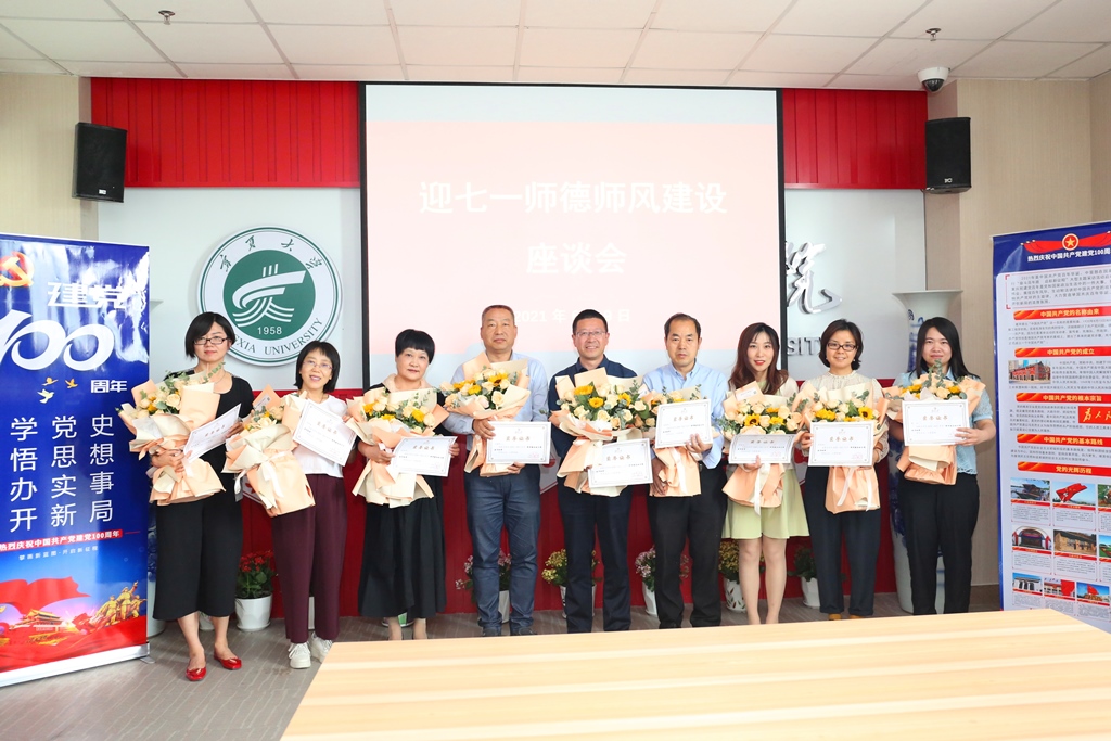6月9日下午,绅士漫画 召开迎“七一”师德师风建设教师座谈会。会议表彰了2020年度院级 “我心目中的好老师”、教学优秀奖、科研及服务地方突出贡献奖及工会工作积极分子奖教师,学院领导慰问了25年以上党龄的教师党员、党外教师代表、新引进博士代表。