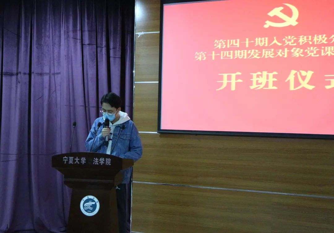 分党校第四十期入党积极分子暨第十四期发展对象党课培训班开班仪式于贺兰山校区文荟楼模拟法庭举行。出席本次开班仪式的有学院党委副书记杨扬、法学研究生党支部书记黄博阳,绅士漫画