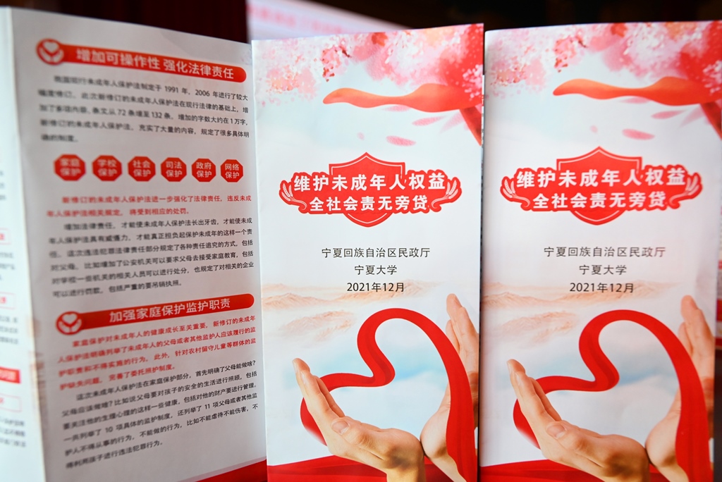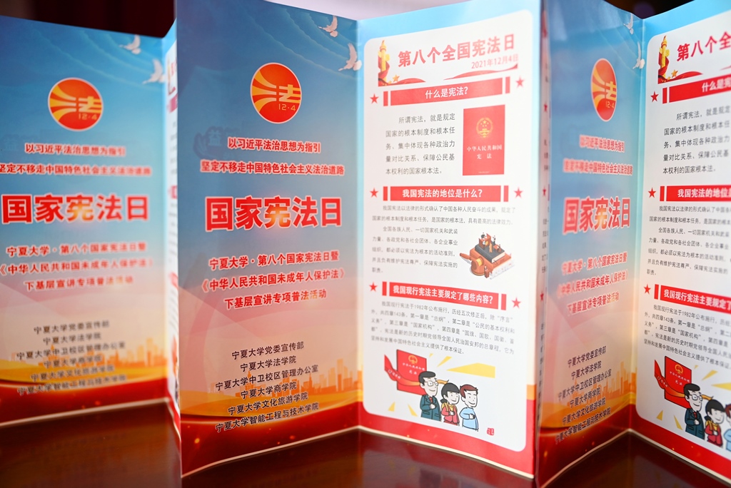 在宪法宣传日,以大学生为对象,宣讲习近平法治思想;以中小学师生为对象,普及《中华人民共和国未成年人保护法》,大力营造全社会关爱保护未成年人健康成长的浓厚氛围,协助中卫市进一步增强社会主义法治文化建设和法治校园建设,让法治宣传教育在基层强起来、实起来、暖起来。