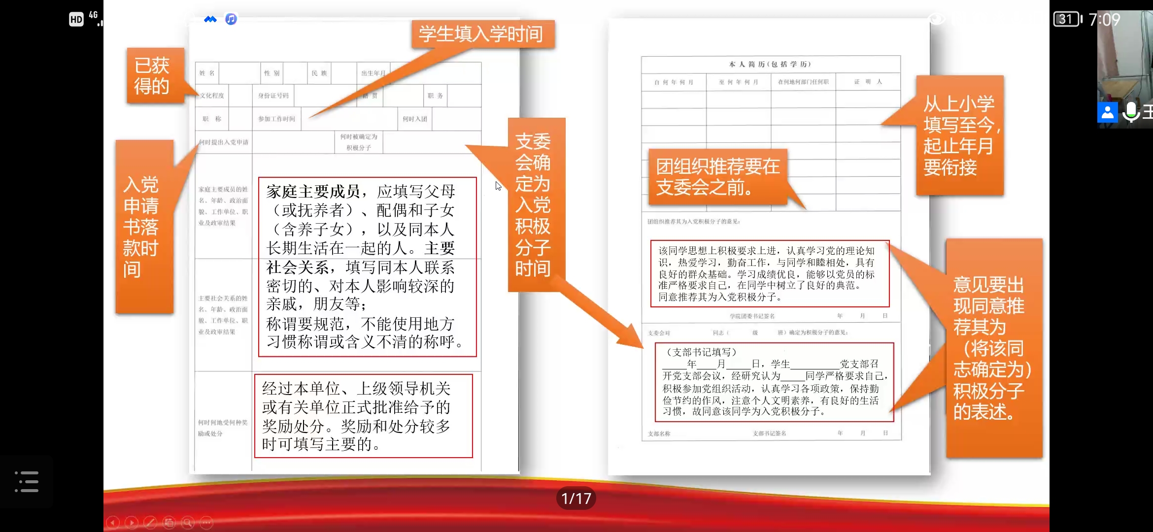 分党校第四十一期入党积极分子、第十五期发展对象培训班和第十四期“青年马克思主义者培养工程”暨团学骨干培训班于线上开展以“入党材料填写要点”为主题的党课培训,培训班全体学员参加。