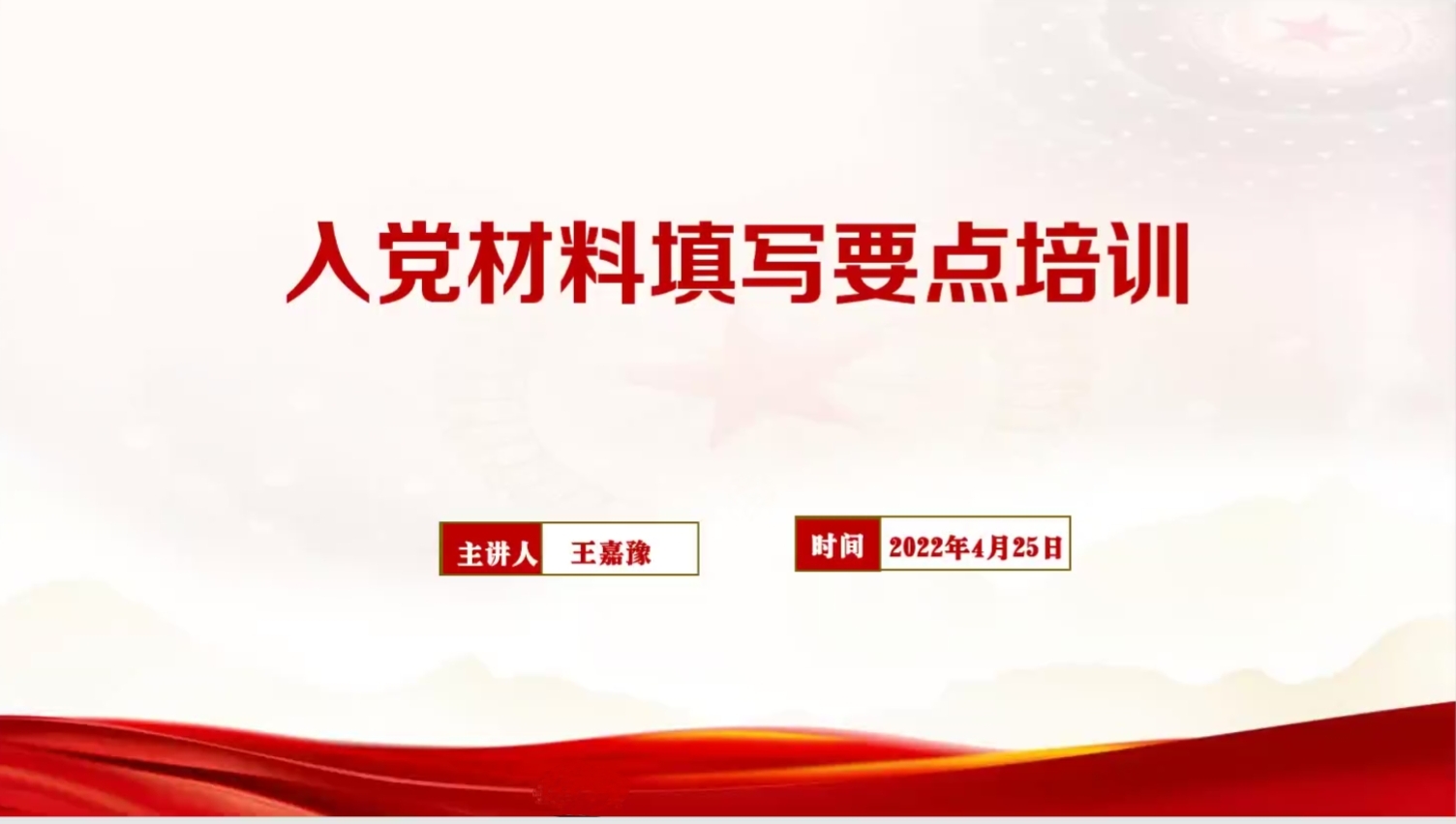 此次培训,王嘉豫就如何填写入党材料进行了详细的讲解。培训伊始,王嘉豫向学员们展示了中国共产党发展党员工作流程图,帮助学员们明确了入党流程以及发展党员所要求的必要条件。随后对发展党员过程中的常见问题一一作出解答,针对入党各阶段需要填写的材料,以表格的形式详细列出。对于入党常用文书写作进行了重点强调,并针对其中的字体、内容、注意事项、文章排版等进行了说明。最后,她重点针对入党积极分子培养考察写实薄中的内容进行了分析和说明。