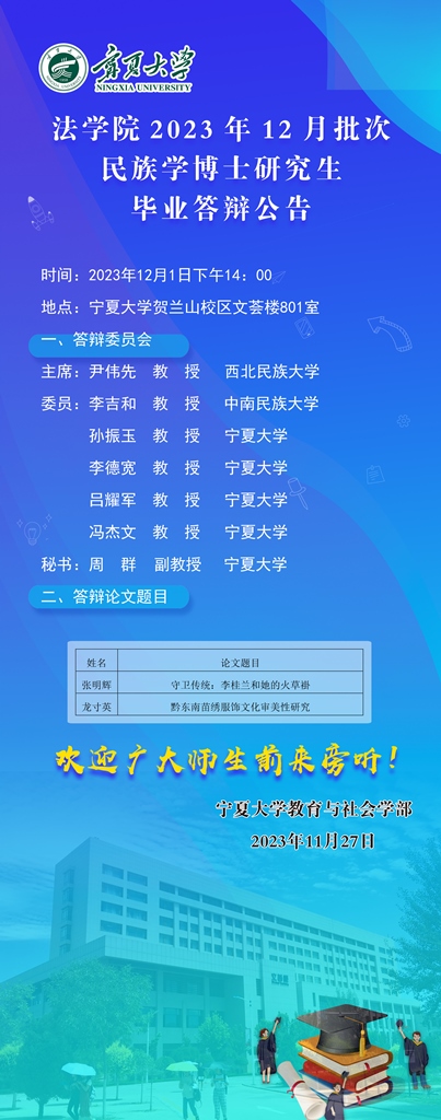 绅士漫画 2023下半年民族学专业博士毕业答辩公告