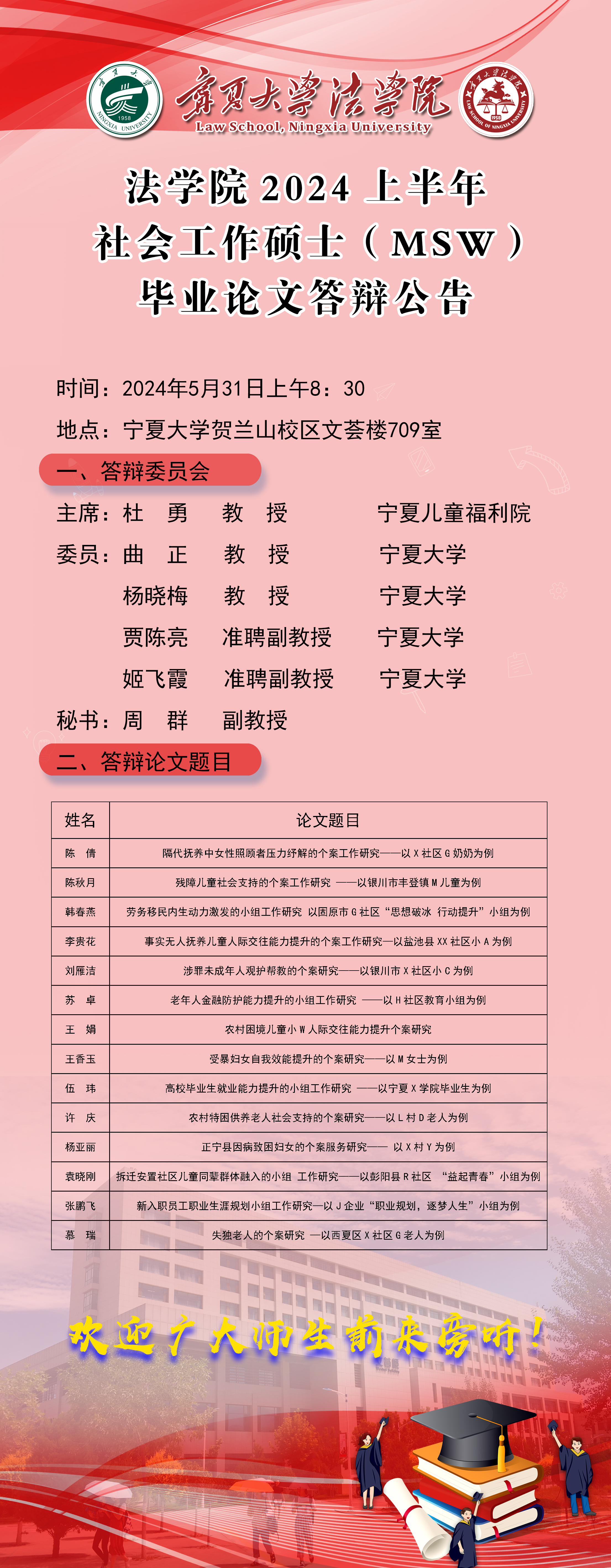 绅士漫画 2024上半年社会工作硕士(MSW)毕业论文答辩公告
